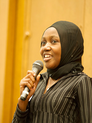 It is an honor to be in your midst tonight. I am a 3rd year PhD Student in the Graduate School of Law under the guidance of Professor Jiro Tamura. I have so many experiences from my stay in Japan but I have only 3 minutes to speak to you so I will keep it short. One of the experiences of Japan that I will never forget is the earthquake of March 11 this year. I was in an office on this campus when the earthquake occurred... Of course I hid under the desk and would not have ventured out if not for the staff who calmly requested us to move outside and gather in the evacuation center. I was scared... But the part of that experience that I cannot forget was how calm and dignified everyone was. There was no panic, no rushing, no shouting ... nothing of that sort. Everyone was just calmly trying to help others and to make way home. I was amazed to see how random people, on the street, were stopping to ask me if I needed any help. They were going through the same experience as I was, but they were so generous and kind to realize that, being a foreigner, I may need some assistance. I do not know how the Japanese do that but I think the rest of the world has a lot to learn from Japan and the Japanese in that regard.