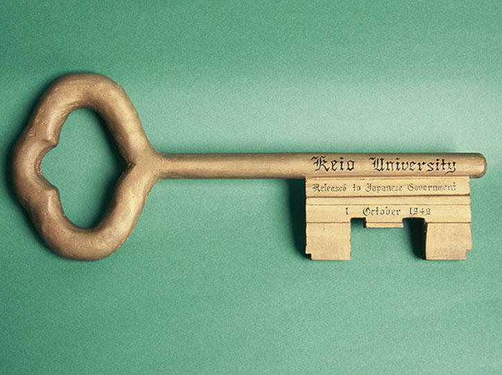 終戦から2年後の昭和22年、義塾は創立90周年を迎え、廃墟となった三田山上で記念式典を挙行した。構内には会場となる建物もなく、焼け跡の広場に設けられたテント張りの式壇に、私学として初めて天皇陛下をお迎えし、「福澤諭吉創業の精神を心として、日本再建の為、一層努力することを望む」とのお言葉を賜った。