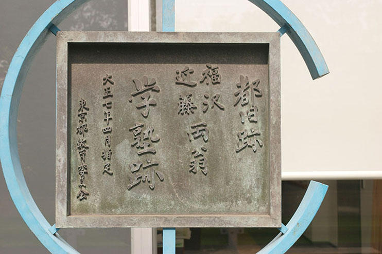 義塾発祥の地は、江戸築地鉄砲洲の中津藩奥平家中屋敷(現在の東京都中央区明石町、聖路加国際病院あたり)であり、最初は蘭学塾としてスタート。奇しくも開塾に先立つこと87年前、わが国蘭学の祖、杉田玄白・前野良沢が、この地で『解体新書(ターヘルアナトミア)』を解読している。