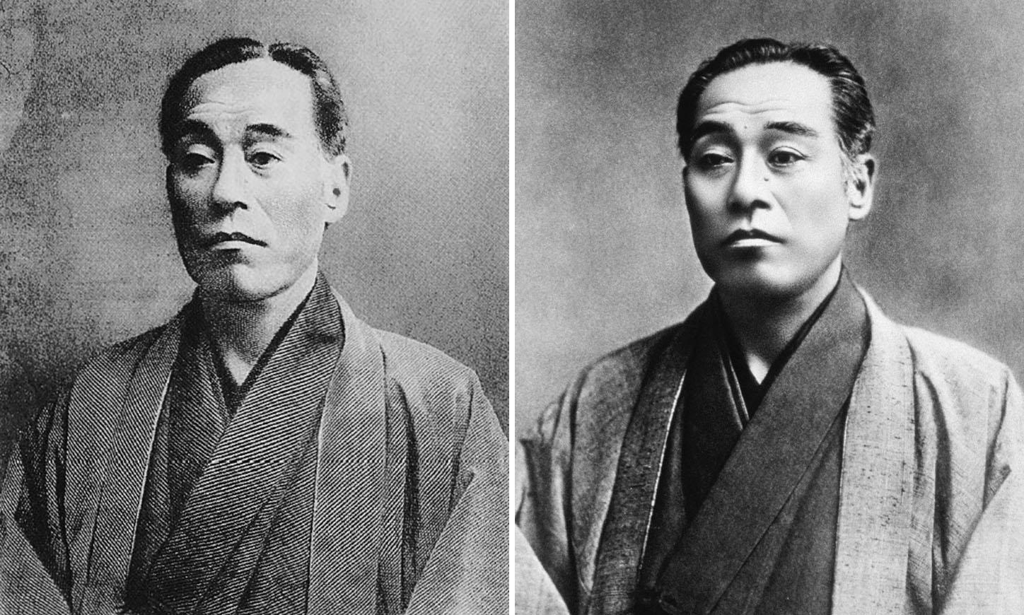 右が福澤家所蔵の写真、左がその写真をもとに制作されたキヨッソーネ作成銅板肖像(複写)。服装、ポーズ、表情など非常に酷似していることがわかる。この銅版画の原版画の原板はすでに失われてしまっている。