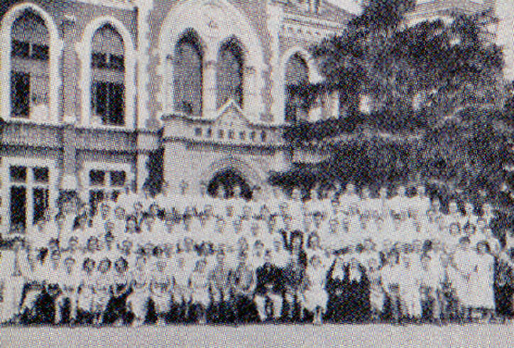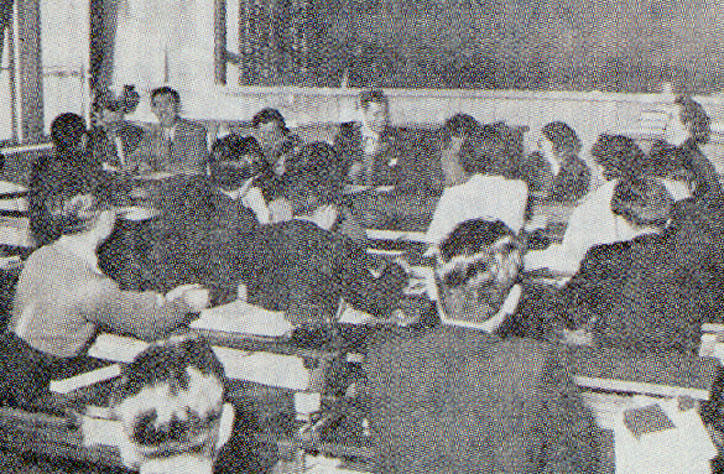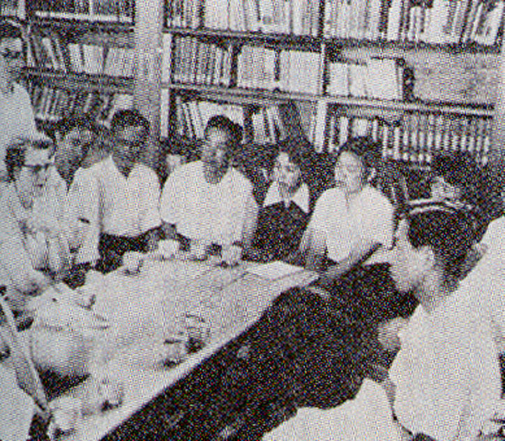 1950(昭和25)年、イリノイ大学図書館長兼図書館学校長のロバート・ダウンズ教授が、「日本図書館学校」創設のための委員長として、図書館学科設置候補と目されていた東京大学、京都大学、早稲田大学、慶應義塾大学を視察のため来日した。来塾したダウンズ教授を迎えた潮田江次塾長(当時)は、まず、わが国における官学と私学の区別を説明し、「新学科は私学に於いてこそ、その特質を発揮できる」と力説した。しかし、戦災で多大な被害を受けた慶應義塾が提供しうるものは「教室二つ」に過ぎないことも申し添え、義塾が選ばれる見込みは薄いと内心では考えていたようだ。