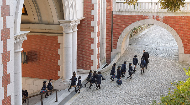 1950(昭和25)年に開校した、慶應義塾における中等教育段階で唯一の女子校。生徒の自主性を重んじ、各人がはつらつと自己を実現できるよう、知性を磨き情操を育てるゆとりある教育を実践しています。一人ひとりの関心や進路に合わせて学べる環境が整っています。