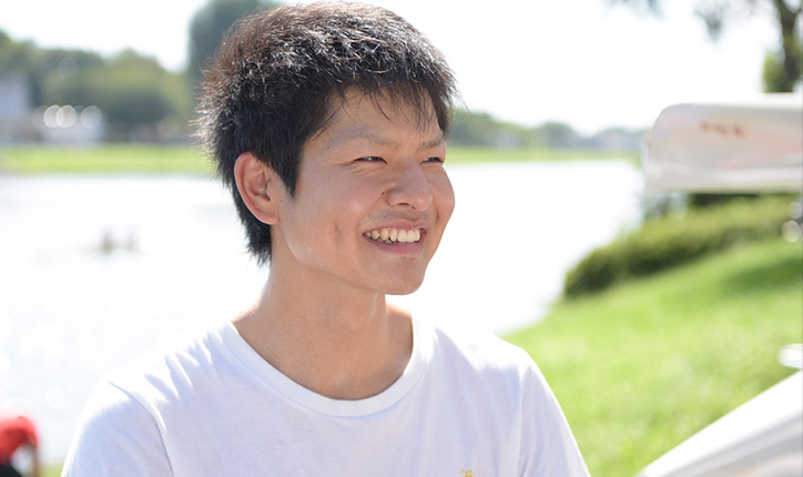 尾留川:僕は秋田の高校出身なのですが、町に川があって学校自体もボートが盛んな環境だったため、興味を持って始めたのがきっかけです。当初は、単純な動きを繰り返すスポーツなのでそんなに難しそうなイメージはなかったのですが、実際にやってみると思った以上に奥が深くて、シンプルな動きの奥に難しさが潜んでいると日々痛感しています。慶應義塾の端艇部には違うスポーツから飛び込んでくる人も多いのですが、ボートは多くのスポーツと異なり脚が固定されるため、最初のうちはバランスがとれなくてひっくり返ってしまうこともあります。膝の伸展の動きとパワーが大事になるので、下半身を鍛えるために、毎日の練習の積み重ねが大事です。我々のチームでは、いわゆるウエイトや筋トレに重きは置いていません。実際に漕ぐ動きの中で身体を鍛えていく方針です。実践練習をメインに、補強的に筋トレやランニングを行っています。