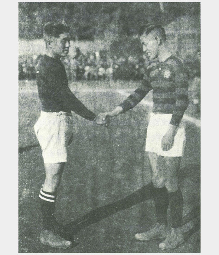 初めての試合はその2年後の1901年、横浜の外国人クラブYC&ACと対戦し、35対5のスコアで大敗した。体格や知識に大きな差があり、ラグビースパイクを着用していたのはクラークと田中の2人だけというハンディがあったが、クラークは歯がゆさから試合中に「You employ JUDO !(柔道を用いよ)」と叫んだと伝えられている。その後、クラークを部長とした蹴球部は体育会に正式加盟。YC&ACに大敗してから7年を経た1908年、フォワードの「セブンシステム」という独自の戦術を考案し、見事に12対0のスコアで雪辱を果たし、歴史的な初勝利を手にすることができた。