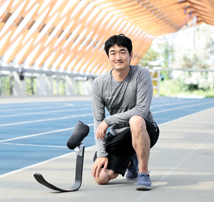 遠藤:多くの義足ユーザーにアスリート用義足で走る喜びを味わってもらうため、2017年に始めたプロジェクトです。アスリート用義足(板バネ)は、航空機などに使われる最高級のカーボン繊維強化プラスチックが素材で一本あたり数十万円もします。なかなか次代を担う子どもたちに試してもらうチャンスはありません。「ギソクの図書館」には板バネ24本のほか、膝継ぎ手や接続のためのパーツも多種取り揃えて、1回500円の使用料金で子どもから大人まで気軽に試すことができます。取り付けと調整には義肢装具士の手助けが必要になりますが、自分で取り換えられるようになれば、自由に来て、走っていただいてもかまいません。楽しそうに走る子どもたちを見ていると、やって良かったと思いますし、社会保障などの制度も含めて義足の人たちが走ることを当たり前にできる時代を創りたいと決意を新たにしています。