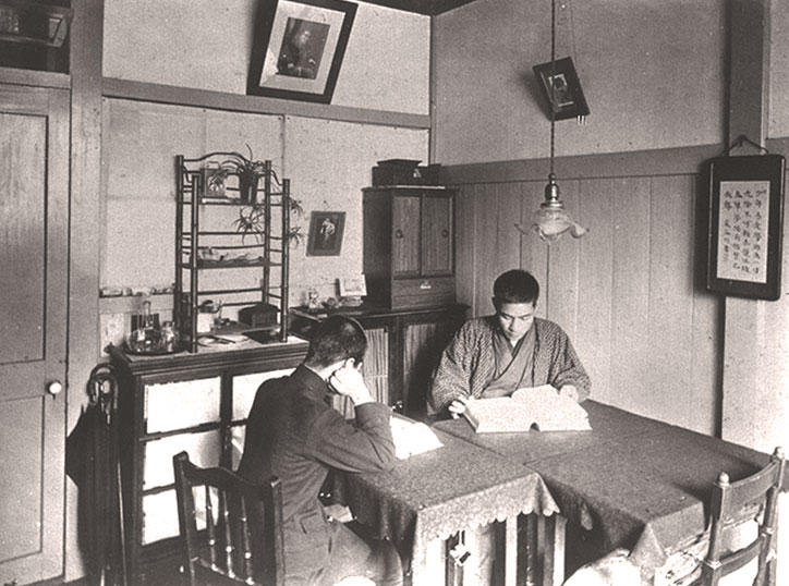 慶應義塾の起源となる江戸・鉄砲洲(現在の中央区明石町)中津藩中屋敷内の蘭学塾で、福澤諭吉と塾生たちは寝食を共にして学んだ。義塾の寄宿舎の歴史はここから始まる。やがて各地から優秀な若者が多数集まると従来の寄宿舎では手狭となり、1868(慶応4)年に芝新銭座へ移転。新しい寄宿舎は、自治会規則など「独立自尊」の考えを踏まえた塾生の自治が大きな特色だった。