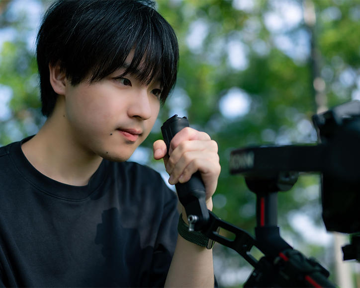 大学入学直後より自主映画制作に取り組み、2年生のときに大学を越えた仲間とクリエイティブ集団「TSUNAGU」を結成。昨年は「港区商店街動画・写真コンテスト」に応募した動画作品が最優秀賞を受賞。これまでにNews PicksやPIVOTなどのメディア映像、株式会社コーセーとのタイアップムービーや2024年港区長選挙候補者の政見プロモーション映像などを手がける。「クリエーターの多くはビジネス領域への関心が薄い。そのため作品を世に問うことなく消えてしまう才能も少なくない」。クリエーターとビジネスをつなぎたいという思いから商学部に進学したという宮田君。卒業後は芸術系大学院入学を目指し課題の映画制作にいそしむ。