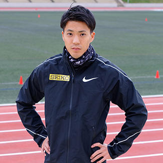 総合政策学部 水鳥寿思准教授、 陸上女子短距離選手 高桑早生君、競走部短距離ブロックコーチ 高野大樹君