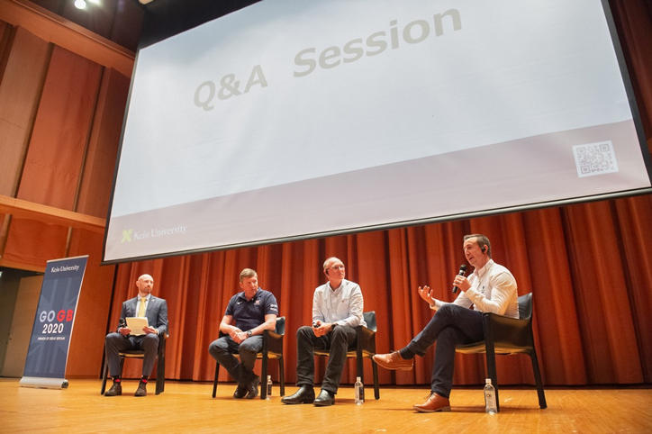 講演のあと、英国大使館のジェームズ・カーター氏の司会により、3名の講師への質疑応答が行われました。学生、教員、体育会関係者から多く手が挙がり、英国代表が日本で直面している課題は何か、なぜ慶應義塾大学を事前キャンプ地として選んだか、といった質問が投げかけられました。