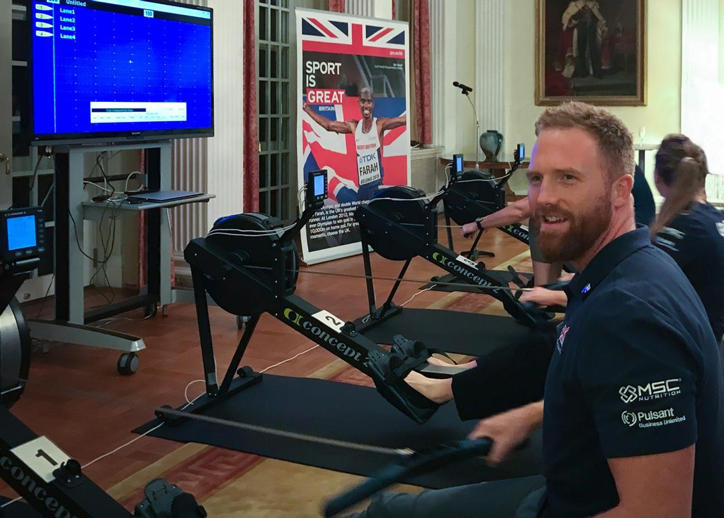 10月19日(金)夜には、駐日英国大使館公邸において、選手を招いてのアフタヌーンティーが開催されました。アフタヌーンティーには、慶應義塾大学端艇部主将も招待され、英国選手に混じってエルゴメーターを漕ぐ場面もありました。