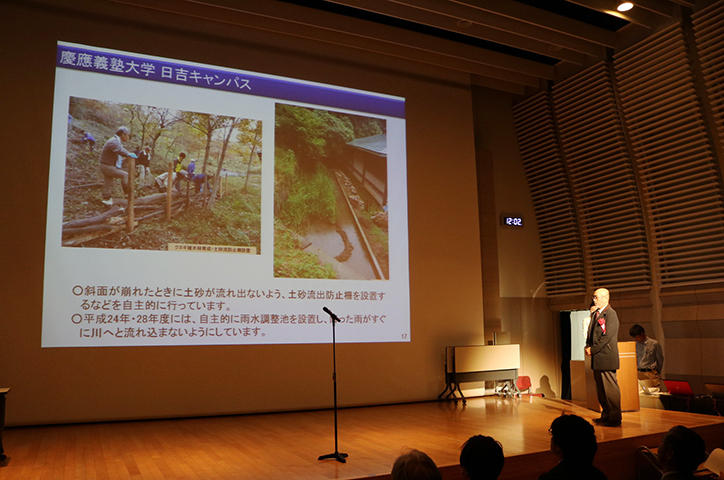 日吉キャンパスでは1991年頃より継続して、雑木林の再生による保水力の回復や生物多様性の保全、土砂流出防止対策の実施、湧水を利用した水辺の再生、自主的な雨水調整池の設置による流出抑制等、環境保全・再生に積極的に取り組んでおり、それらの取り組みが評価されました。