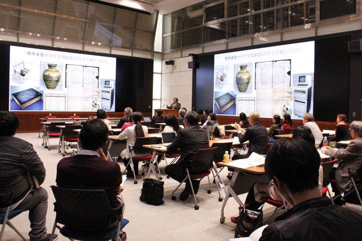 KeMCo機構長の松田隆美文学部教授からは、慶應義塾の分散型ミュージアムの核として、文化財を巡る創造的な活動を支え、新たな知識や人々に出会うオープンスペースとして機能するKeMCoの役割が紹介されました。副機構長の渡部葉子アート・センター教授からは、KeMCoで展開されるアクティブ・ラーニング・プログラム「オブジェクト・ベースト・ラーニング(Object-based Learning)」の概要や海外における展開、教育研究における重要性が語られました。また、所員の重野寛理工学部教授からは、慶應義塾の文化財の幅広い活用を支えるデジタル・プラットフォームのコンセプトや、教育におけるデジタル技術の活用についての紹介がありました。