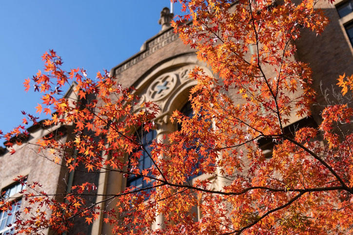 今年も黄金色に輝くイチョウや、赤く色づくモミジなどが各キャンパスを彩りました。この季節ならではのキャンパス風景をお楽しみください(11月下旬~12月初旬撮影)。