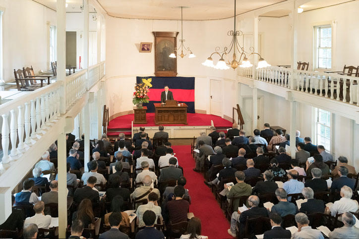 戊辰戦争のさなかの慶応4年5月15日、江戸中が騒然とする中、福澤諭吉は動ずることなくいつものようにフランシス・ウェーランドの経済書に関する講義を続けました。慶應義塾では、世の中にいかなる変化があっても学問教育を尊重した福澤の精神を長く伝えるために、5月15日を「福澤先生ウェーランド経済書講述記念日」として1956年より記念講演会を開催しています。