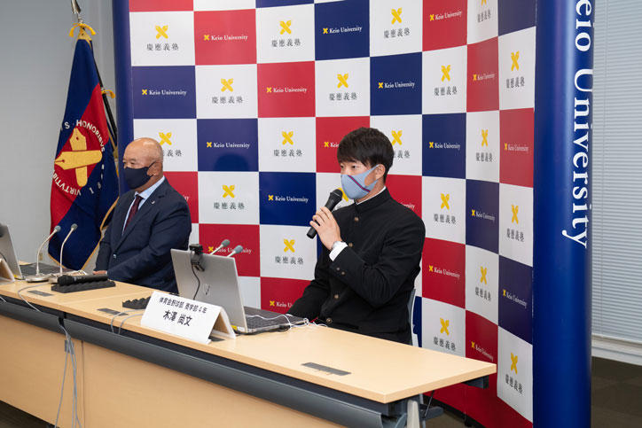 今年は感染症対策のため来場する報道陣の人数を制限し、オンラインで記者会見を行いました。指名を受けた部員たちは堀井哲也監督とともに登壇し、指名の喜びやこれまで支えてもらった家族への感謝の気持ち、今後の意気込みなどを語りました。