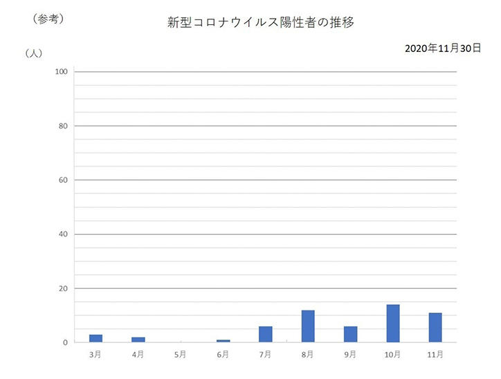 2020年11月30日現在の検査陽性報告者数【累計】教職員5名