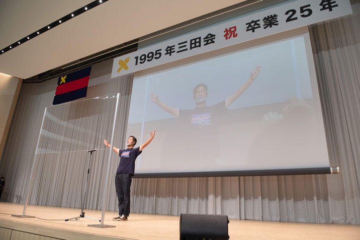 当初予定していた卒業式での集まりに比べ小規模な開催となりましたが、参加者は学生時代とは様変わりした日吉キャンパスを背景に在学当時を思い起こし、旧友との再会を喜び合いました。