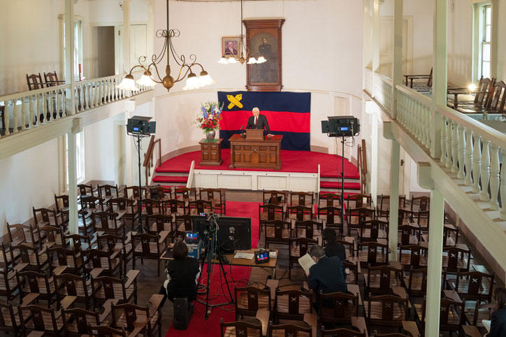 本年は、権丈善一商学部教授により、「“この人民ありてこの政治あるなり”の今日的意味合いを語って、10年」という演題で、三田演説館において、収録が行われました。