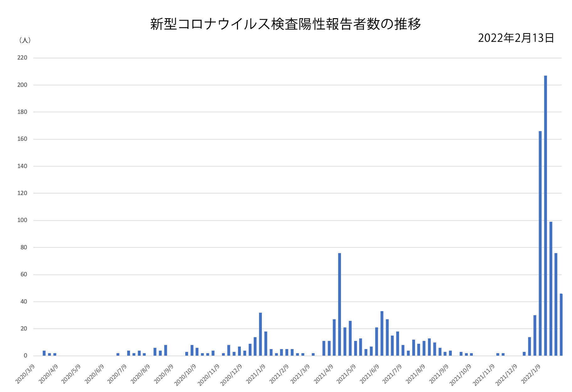 【累計】2020年3月から2022年2月13日までの検査陽性報告者数