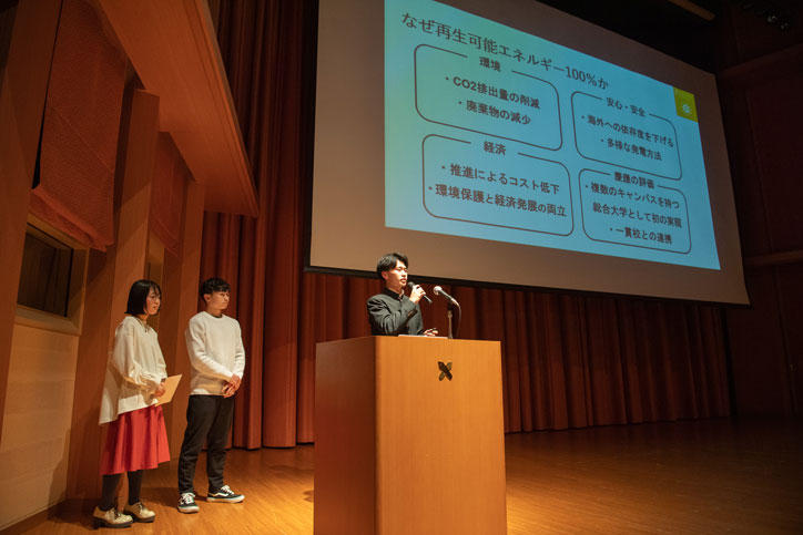 参加学生は、伊藤公平塾長、2022塾生会議のスーパーバイザーである政策・メディア研究科 蟹江憲史教授と同研究科 国谷裕子特任教授をはじめとする教職員、キャンパス関係者を前に、自分たちで考えた慶應義塾への提言を発表しました。