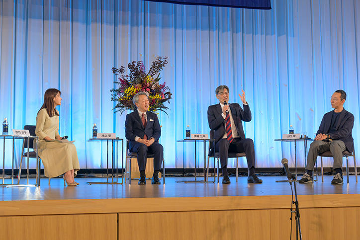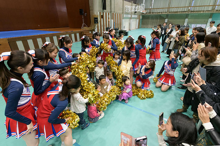 このほか、塾長トークイベント「リアルで会うということ」~ポストコロナの気品の泉源~と題して、池上彰氏、山口周氏、伊藤塾長による鼎談や、チアリーディング キッズ体験教室などのイベントも用意され、幅広い年代の方が楽しめるプログラムがキャンパス内の各会場で開催されました。多くの模擬店の出店もあり、雨が上がった後の記念館前や中庭では食事を楽しむ姿も多くみられました。最後には、グランドフィナーレとして、豪華賞品が当たる福引抽選会や応援歌ステージが行われ、久しぶりの再会を喜びあう一日となりました。