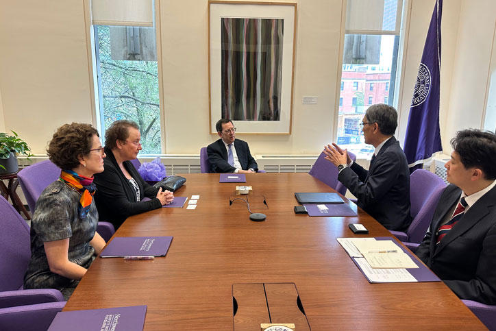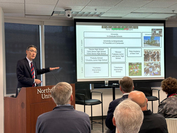 ■伊藤塾長、Northwestern大学で講演2023年9月11日に伊藤塾長、土屋常任理事がNorthwestern Universityを訪問しました。伊藤塾長はNorthwestern Roberta Buffett Institute for Global Affairs において、“State-of-the-art Applications of Quantum Computing”と題した講演を行い、慶應義塾大学の量子コンピューターのアルゴリズムやソフトウェア研究などを紹介し、科学・産業分野における量子コンピューターの将来の展望などについて議論しました。また、講演の前には伊藤塾長と土屋常任理事が、従来から経営管理研究科と交流のある同大学のKellogg School of Managementを訪問、また、Feinberg School of Medicineの研究者等と面会し、Michael Schill学長とも面会して、今後の両大学のより広い交流について懇談しました。