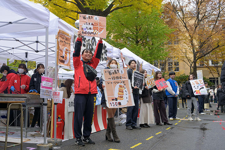 学園祭でおなじみのステージ公演企画、ゼミナールの研究発表や展示、ゲストを招いた講演会のほか、飲食物を販売する模擬店企画など、様々な企画が行われ、従来の賑わいが戻った三田山上は活気にあふれていました。