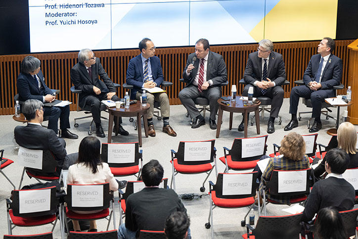 パネル・ディスカッションは細谷雄一慶應義塾大学法学部教授が進行し、各講演者による異なる視点からの議論が交わされました。留学生を含む参加者との質疑応答も行われ、参加者にとって各国大使からの回答を直接得られる貴重な機会となりました。