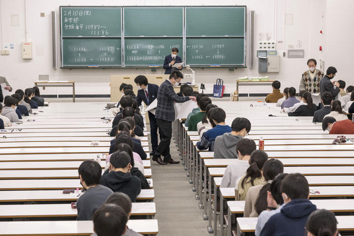 写真は2月10日の三田キャンパスにおける薬学部入試当日の様子です。