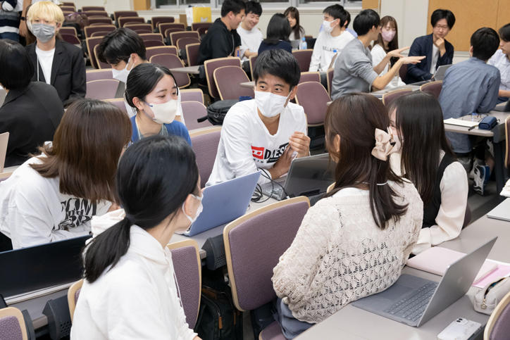 最後にはグループディスカッションと発表を実施。「全世界が共通して大きな目標を掲げる意義とは?」をテーマに、学部や学年の垣根を越えて、さまざまな意見が交わされました。