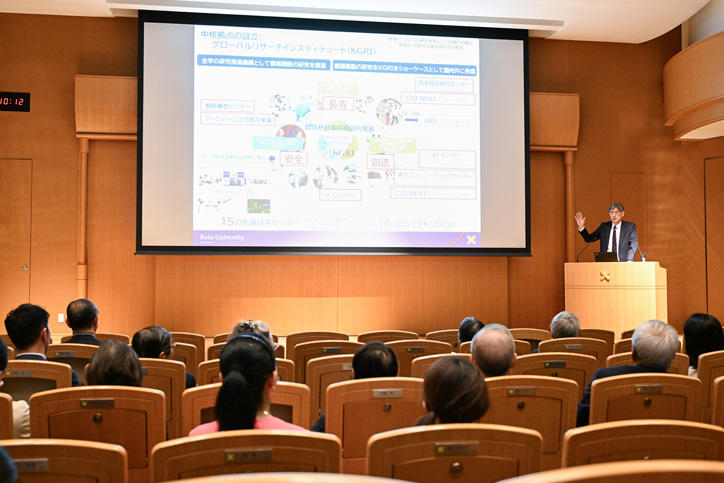 当日は、ご寄付をいただいた多くの皆様や関係者の方々にご出席いただき、伊藤公平塾長からご支援への御礼とともに、世界のオピニオンリーダーとの連携による国際的なネットワークの拡充や最先端の研究事例紹介など、現在、慶應義塾が力をいれて取り組んでいることや今後の展望が語られました。