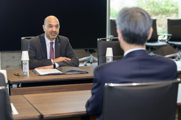 さらに、ケルン大学のムカジー学長と伊藤塾長、土屋常任理事による懇談もシンポジウム中に行われました。ケルン大学は、本学の重要な学生交換協定校であり、本学が令和5年度に採択された「地域中核・特色ある研究大学強化促進事業(J-PEAKS)」の参画機関でもあります。本シンポジウムを契機に、両大学間の連携をさらに強化していきます。