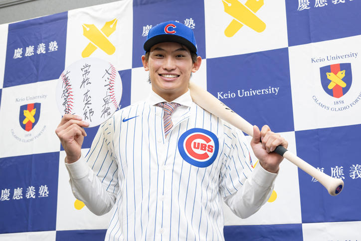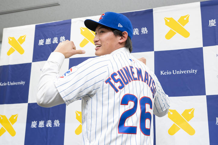 MLBシカゴ・カブスとのマイナー契約締結を発表した常松広太郎君(法学部政治学科4年)が、1月19日、日吉キャンパス内にて記者会見を行いました。