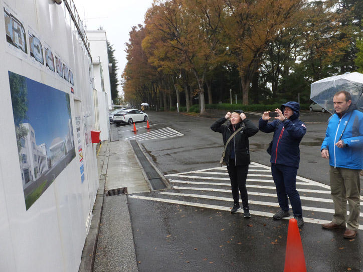 一行は、日吉記念館の建設現場にも立ち寄りました。8月に続いて2度目の訪問となったチーフメディカルオフィサーのNiall Elliot医師は、前回に比べすっかり高くなった建物を見上げ、着実に建設が進んでいる状況に安心した様子でした。