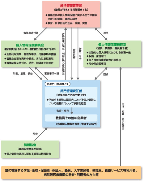 義塾は、個人情報を適正に取り扱うため、以下のとおり、個人情報を保護するための組織・体制を整備します。