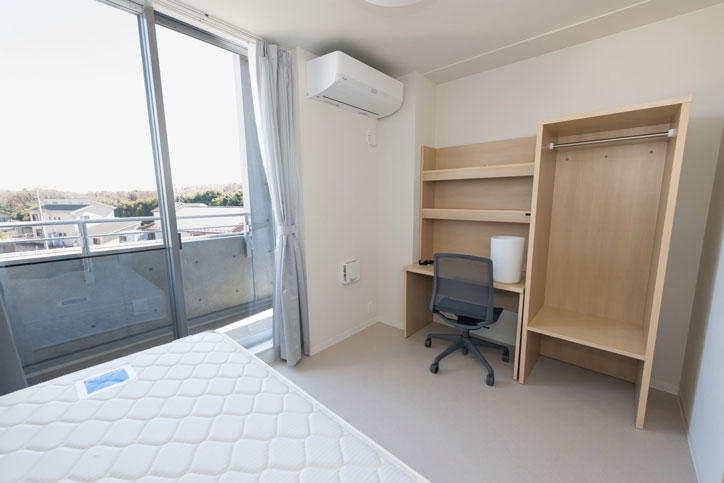 2017年開設。日本人学生2人、留学生2人の4人で1ユニットの国際学生寮で、共用キッチンや集会室など交流スペースも豊富です。